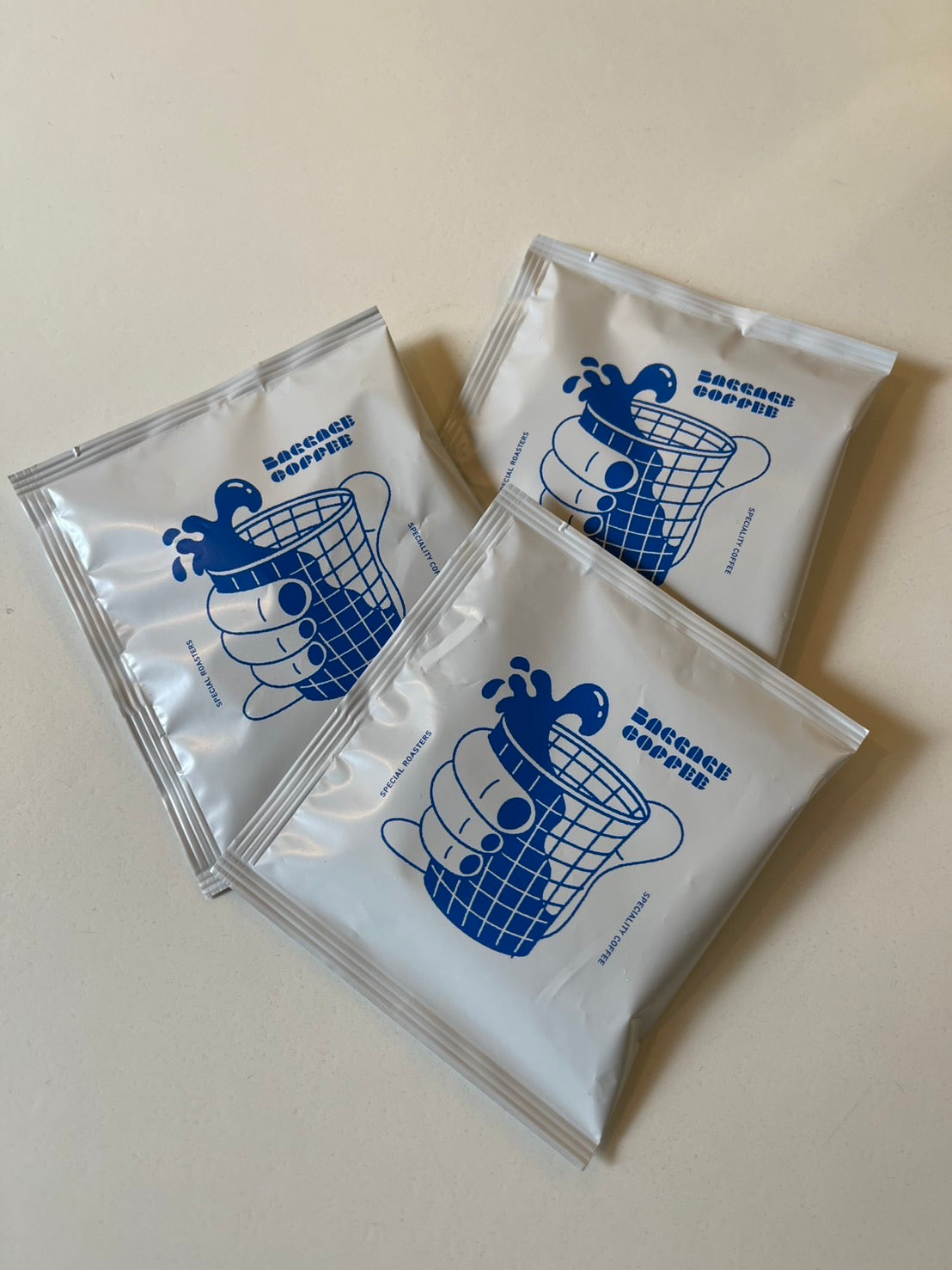 BAGGAGE COFFEEオリジナルブレンドの中煎り豆を使用した、ディップスタイルのドリップパック。