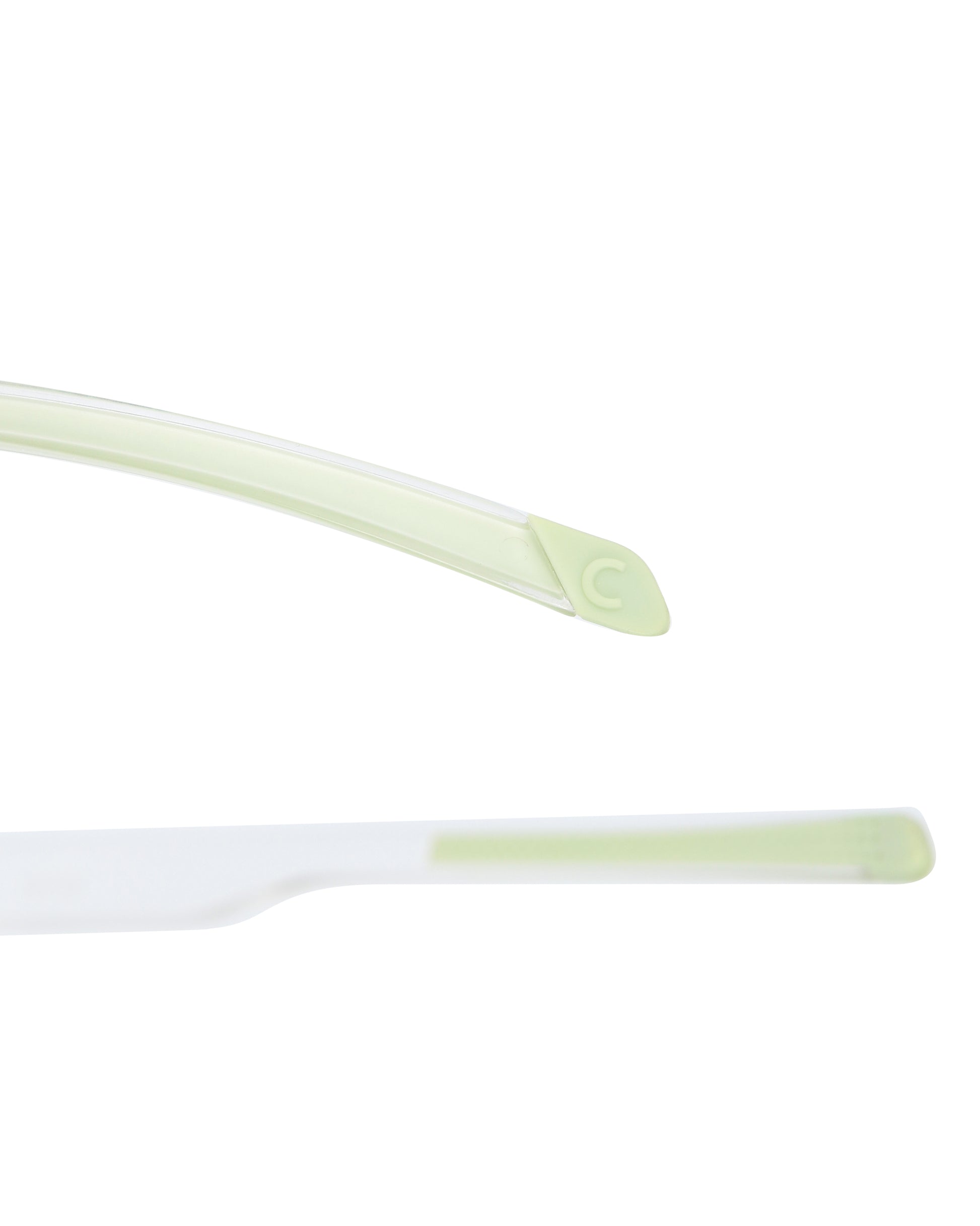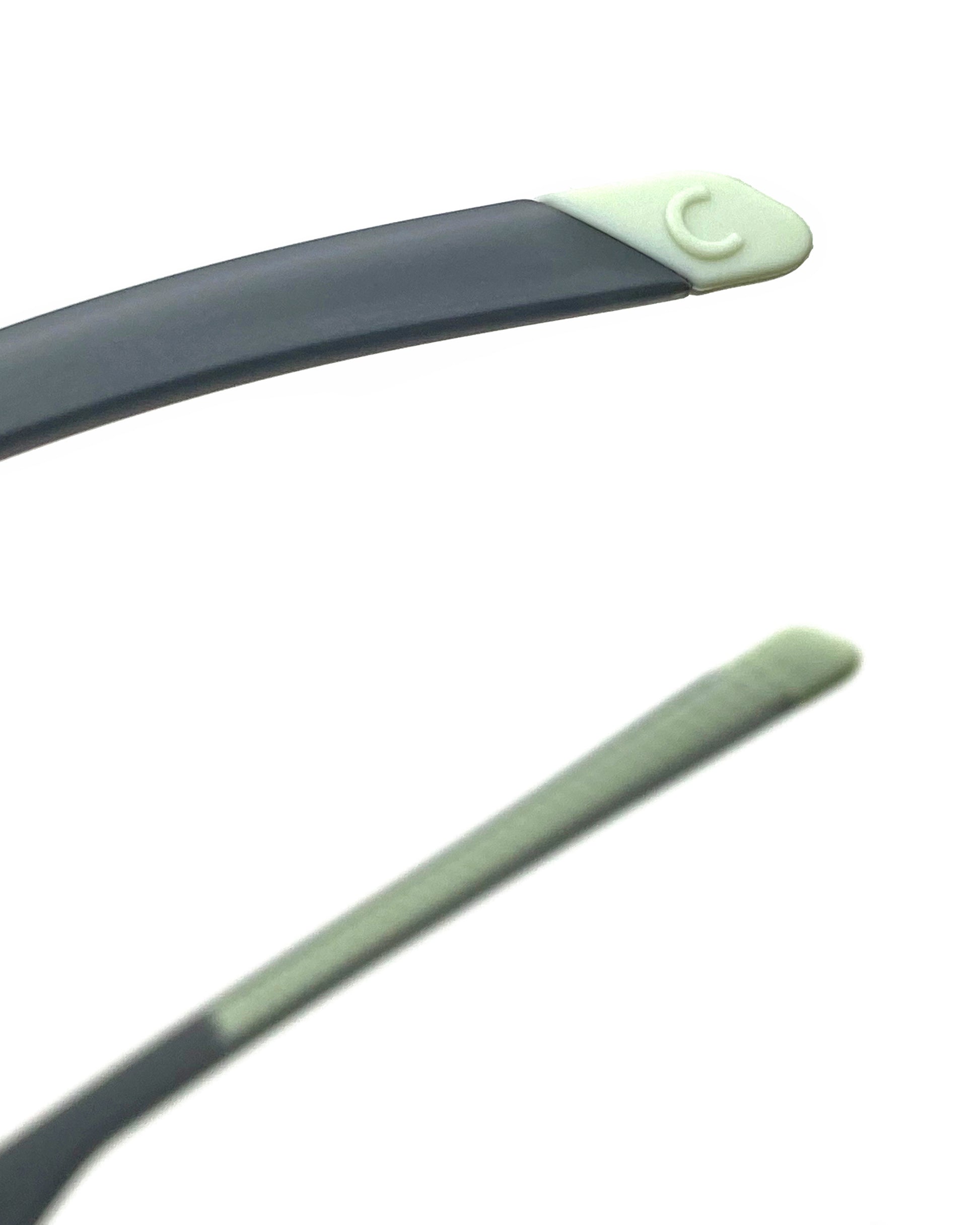 - 着用を忘れるような軽い掛け心地、テンプルのバネ感、激しい動きの中でも非常にずれにくい機能性を持ちつつ、モダンでカジュアルなデザインを採用しています。