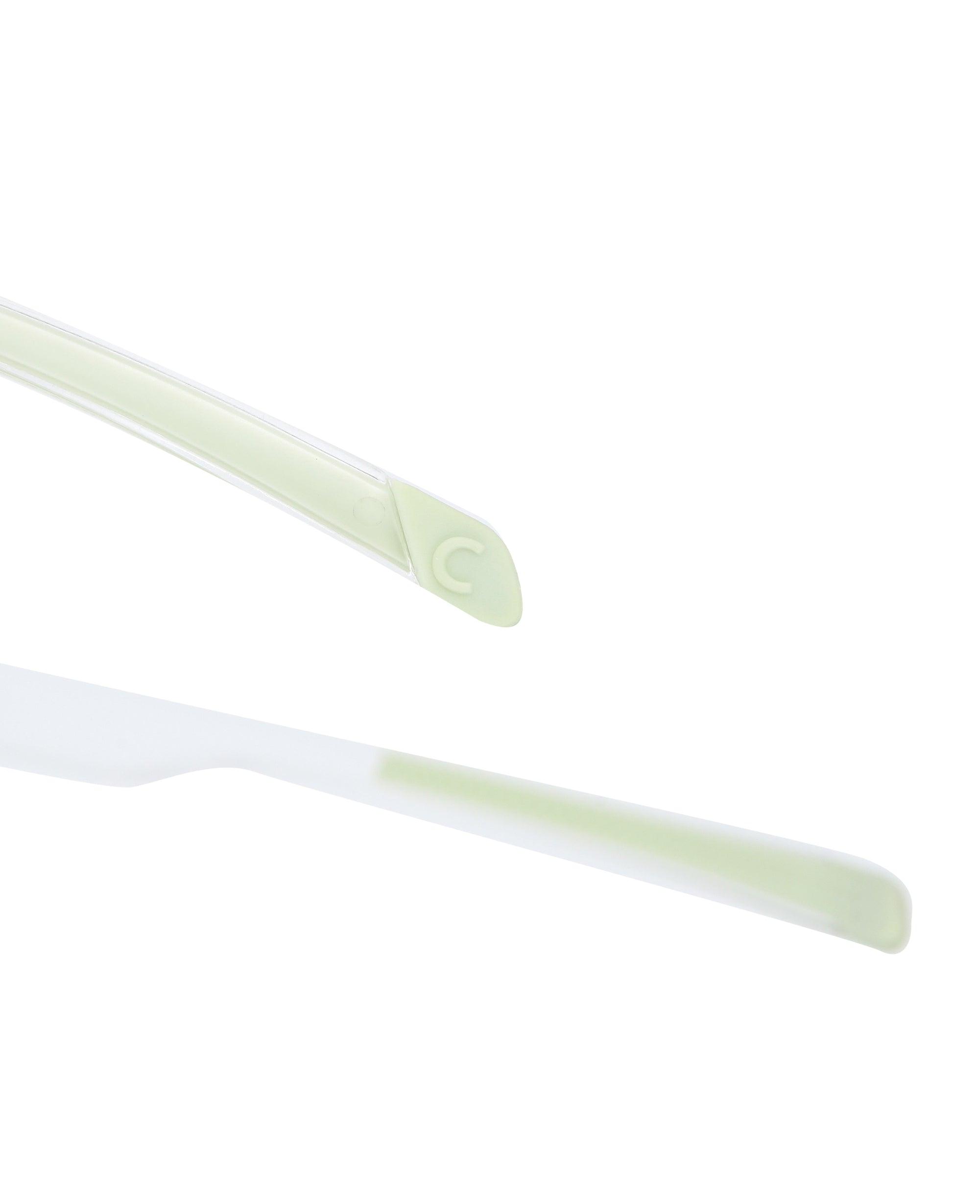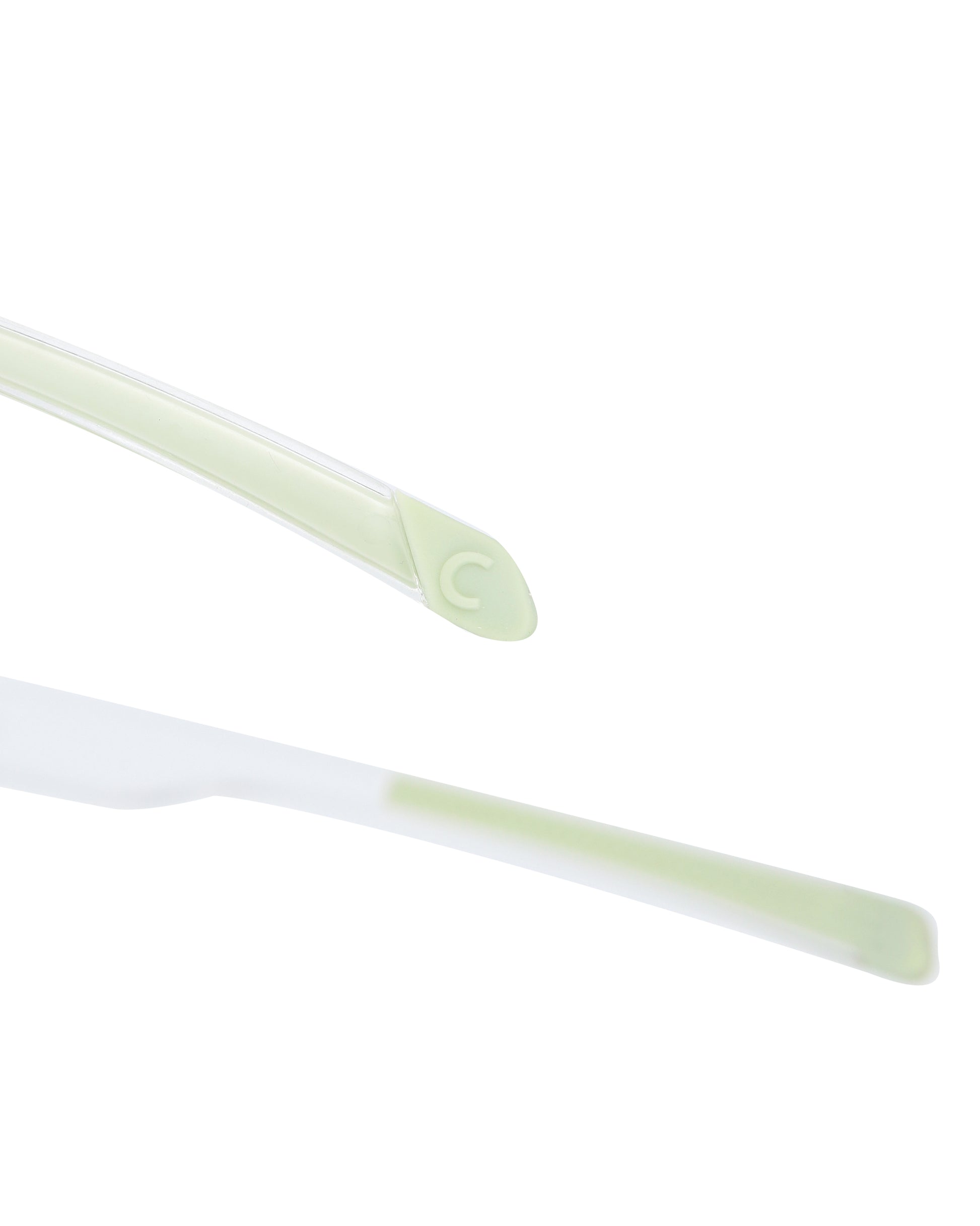 - 着用を忘れるような軽い掛け心地、テンプルのバネ感、激しい動きの中でも非常にずれにくい機能性を持ちつつ、モダンでカジュアルなデザインを採用しています。
