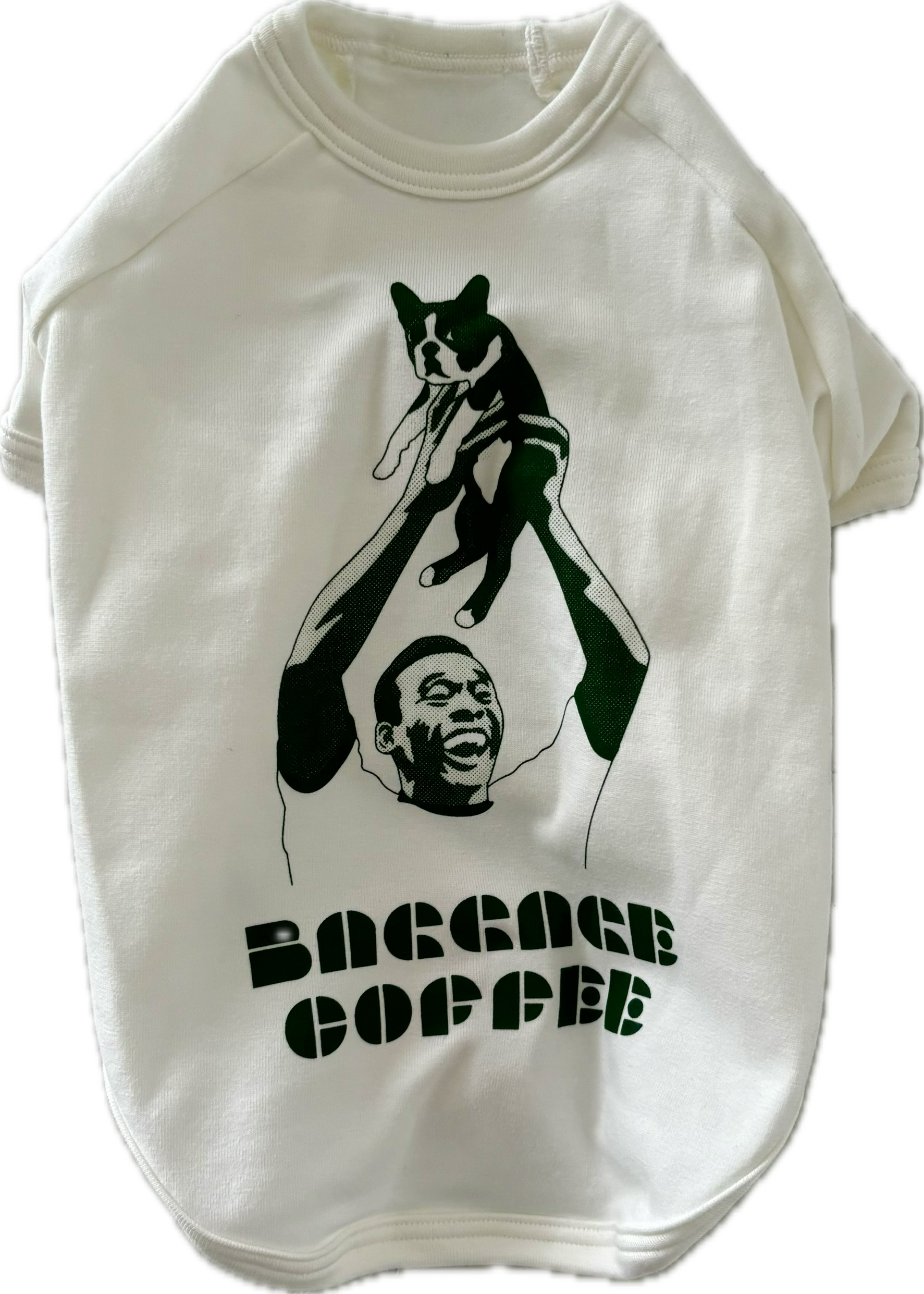 W杯3度の優勝を経験をしたペレが、BAGGAGE看板犬のペレをトロフィーと間違えて掲げた瞬間。人間用のペレTEEと合わせて、愛犬とお揃いのコーディネートもおすすめ。