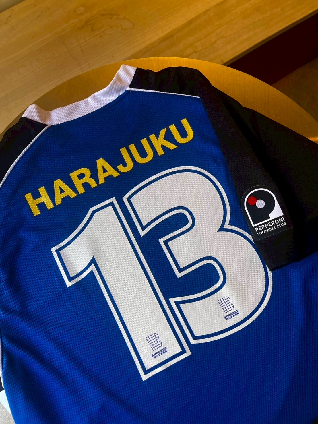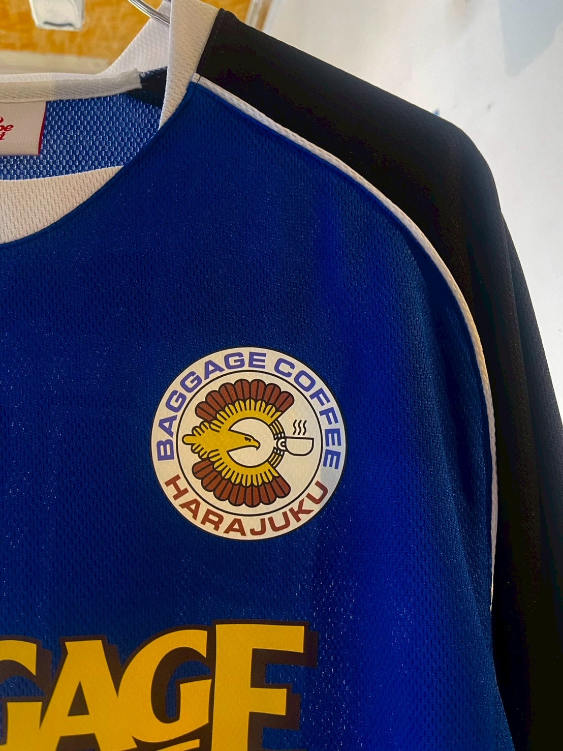 韓国のブランド「Peperoni Seoul(ペパロニソウル)」と「BAGGAGE COFFEE」によるコラボデザインのサッカーユニフォーム風シャツ。鮮やかなブルーを基調にブラックとホワイトのラインを効かせたスポーティなデザインで、胸元には「BAGGAGE COFFEE HARAJUKU」のプリントと「Peperoni Seoul」ロゴをあしらっています。ストリートスタイルからカジュアルコーデ、サッカー観戦など幅広いシーンで主役になる1枚です。